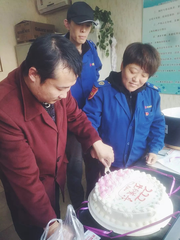 在這個值得慶祝的時刻,有一位多年乘坐222路公交車的鐵粉兒,得知20日是222路開通整40周年的日子,特意為車隊送來了自己訂做的蛋糕,上面寫著:風雨同路四十載,此刻共慶2018年!