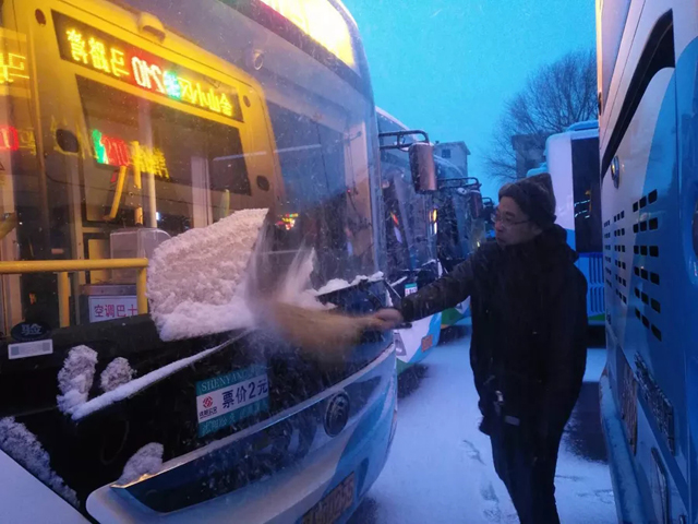 2019年2月15日、19日沈城兩次降雪,每一次的雨雪天氣的來(lái)襲,都是對(duì)全體一線公交人都是嚴(yán)峻的考驗(yàn)。面對(duì)惡劣天氣,各單位多項(xiàng)舉措在雨雪中連夜奮戰(zhàn),干部職工上下一心,紛紛提前到崗,清理場(chǎng)區(qū)、站區(qū)、車輛積雪,做好出車前的各項(xiàng)例行檢查,全力保障市民安全出行。大家不畏嚴(yán)寒、齊心協(xié)力、配合默契,忙碌的身影在雪天里形成了一道最亮麗的風(fēng)景線。