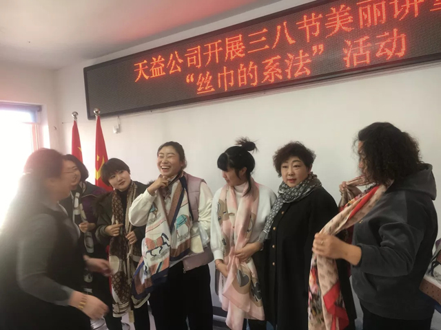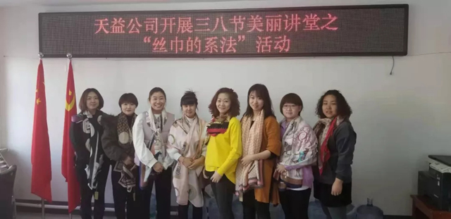 3月8日上午,天益公司舉辦了慶祝“三八節(jié),絲巾造型歡樂(lè)賽”活動(dòng),向偉大而無(wú)私奉獻(xiàn)的女性同志們致以節(jié)日的問(wèn)候。