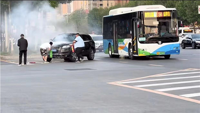 駕駛員沉著鎮(zhèn)定 挺身救火