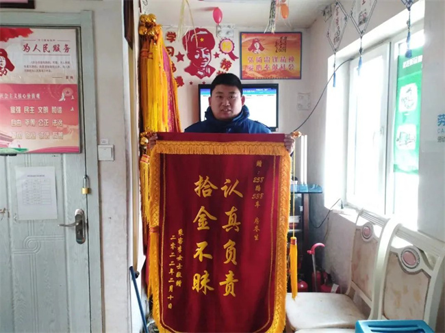 2月10日,258路車隊(duì)迎來一位熟悉的面孔,她帶著印有“認(rèn)真負(fù)責(zé) 拾金不昧”的錦旗,說是要謝謝駕駛員房冬生。