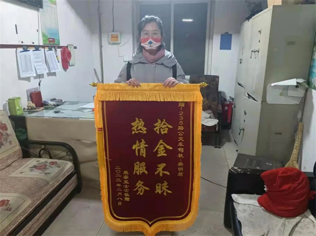 幾天后,王女士制作了一面錦旗送到了235車隊(duì),再次表達(dá)對(duì)車隊(duì)和駕駛員樊明君的感謝。