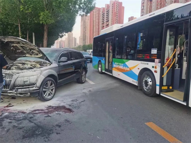 5月20日傍晚,沈陽客運(yùn)集團(tuán)沈蘇公司154路駕駛員劉健偉駕駛車輛經(jīng)過渾南伊麗雅特灣車站附近時(shí),發(fā)現(xiàn)停在右側(cè)車道上一輛小轎車冒出陣陣濃煙。