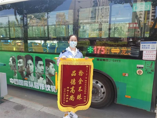 隨后,車隊管理人員通過證件信息聯(lián)系到了失主,失主聽說自己丟失的手包被175路駕駛員拾到并在車隊妥善保管時,喜出望外。雙方約定了時間,失主趕到車隊,顧宏娟親手將手包遞交到失主手中。失主當(dāng)即表示要拿出現(xiàn)金作為酬謝,被顧宏娟婉言謝絕。失主為表示對駕駛員的感謝和敬意,特意制作一面錦旗送到車隊。
