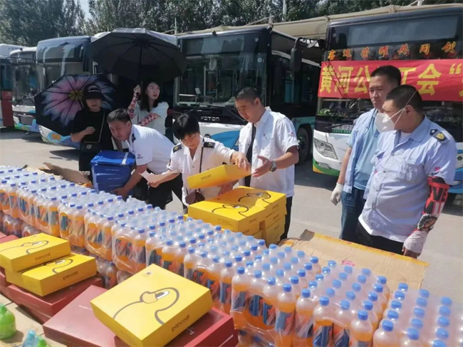 7月26日是二伏的第一天,酷暑難當(dāng)。黃河公司由工會牽頭、領(lǐng)導(dǎo)班子帶隊(duì),在西江街公交樞紐站開展了“關(guān)愛職工、夏送清涼”活動(dòng)。活動(dòng)中,公司領(lǐng)導(dǎo)班子將購置的飲料、礦泉水、浴巾、毛巾、西瓜、洗手液等防暑降溫及清潔物品,分發(fā)給公司公司所屬14個(gè)車隊(duì)的22條線路、及機(jī)關(guān)、車間。