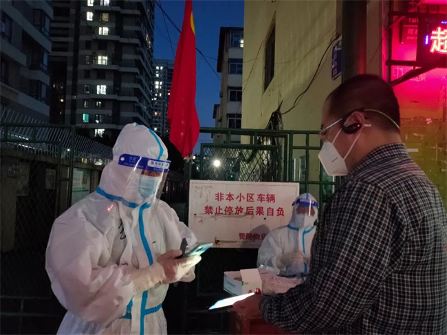 有一次入戶核酸檢測,王眾和同伴上了31層的高樓,等工作結(jié)束時(shí),電梯沒有電了?!拔覀円恍腥?,從31層樓走下了1樓。下來時(shí),個(gè)個(gè)累得氣喘吁吁,腿都哆嗦,當(dāng)時(shí)每一個(gè)人戴著隔離面罩、N95口罩,穿著防護(hù)服,大家都很辛苦……”