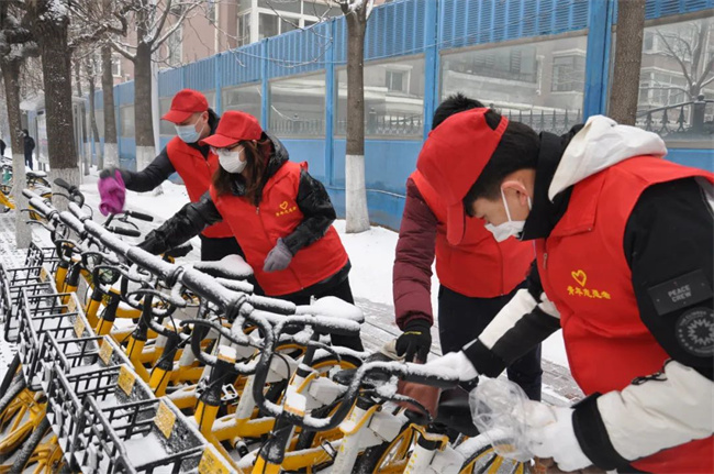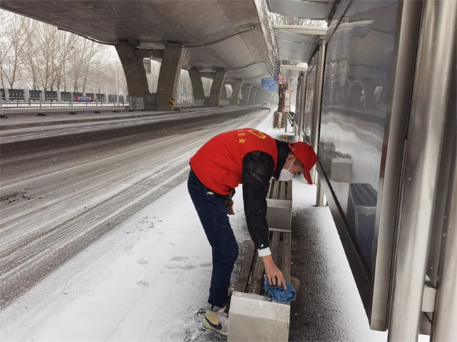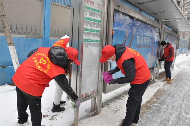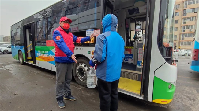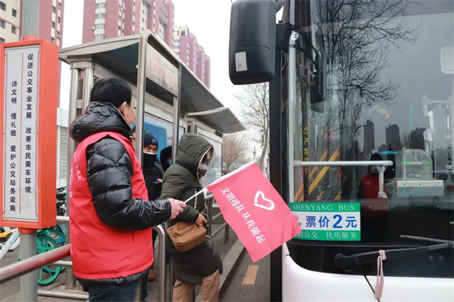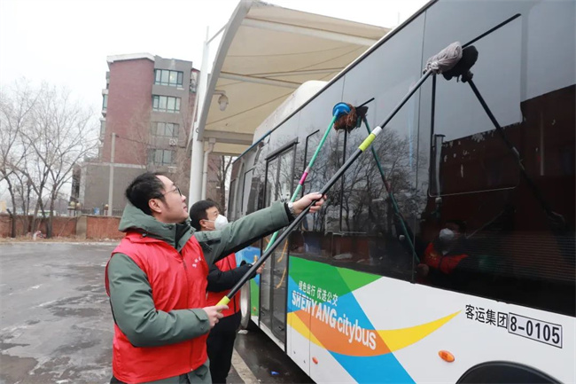 參加活動的青年志愿者們頭戴小紅帽,身披“沈陽市青年志愿者”字樣的紅馬甲,清洗公交車輛,擦拭候車廊站牌,清掃場區(qū)站區(qū)站務室環(huán)境衛(wèi)生,擺放站區(qū)周邊共享單車,使環(huán)境衛(wèi)生煥然一新、整潔有序。同時,志愿者們通過公交車車內(nèi)廣播、站區(qū)廣播、橫幅標語、LED屏等載體,向過往市民、乘客宣傳“暖冬行動”,積極引導廣大乘客文明乘車,爭做文明出行的踐行者,為創(chuàng)建美麗沈陽貢獻力量。