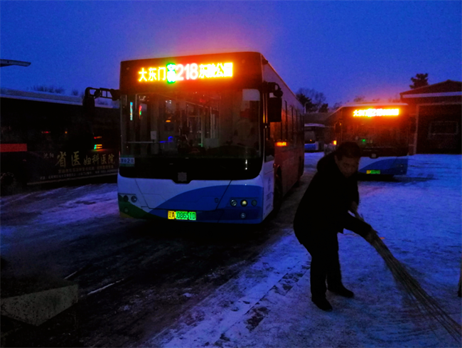 雪后的次日清晨,寒冷的天氣加上冰雪路面,給交通出行帶來(lái)了極大不便。為了保證各條線路正常運(yùn)營(yíng)秩序,車隊(duì)駕駛員提前到崗預(yù)熱車輛,確保首車發(fā)車準(zhǔn)時(shí)準(zhǔn)點(diǎn);車隊(duì)其他人員及時(shí)清理站臺(tái)積雪,保證車輛進(jìn)出站的安全,防止乘客在上下車時(shí)滑倒摔傷;同時(shí),公司GPS智能調(diào)度中心也加強(qiáng)了車輛運(yùn)行狀況的監(jiān)控力度,在保證運(yùn)營(yíng)安全有序的情況下,做到科學(xué)調(diào)度,全力以赴保障市民安全出行。