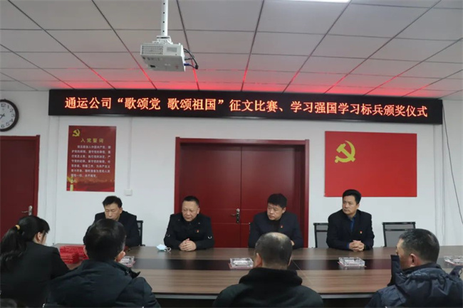 1月12日上午,通運(yùn)公司在一樓會(huì)議室召開“歌頌黨 歌頌祖國(guó)”征文比賽、學(xué)習(xí)強(qiáng)國(guó)學(xué)習(xí)標(biāo)兵頒獎(jiǎng)儀式,公司領(lǐng)導(dǎo)班子及各支部書記、獲獎(jiǎng)職工代表參加,共30余人。