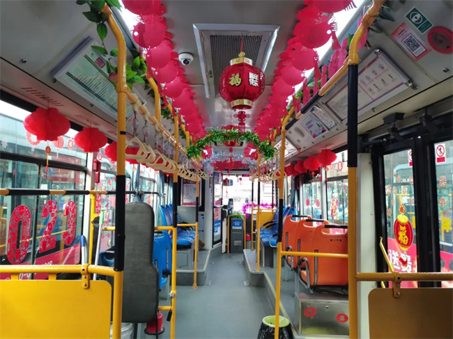 在辭舊迎新之際,通運(yùn)公司249路駕駛員王眾自費(fèi)購(gòu)買了小燈籠,拉花,窗花,福字等飾品來(lái)扮靚自己的愛(ài)車。被精心“打扮”后的車廂,年味十足。