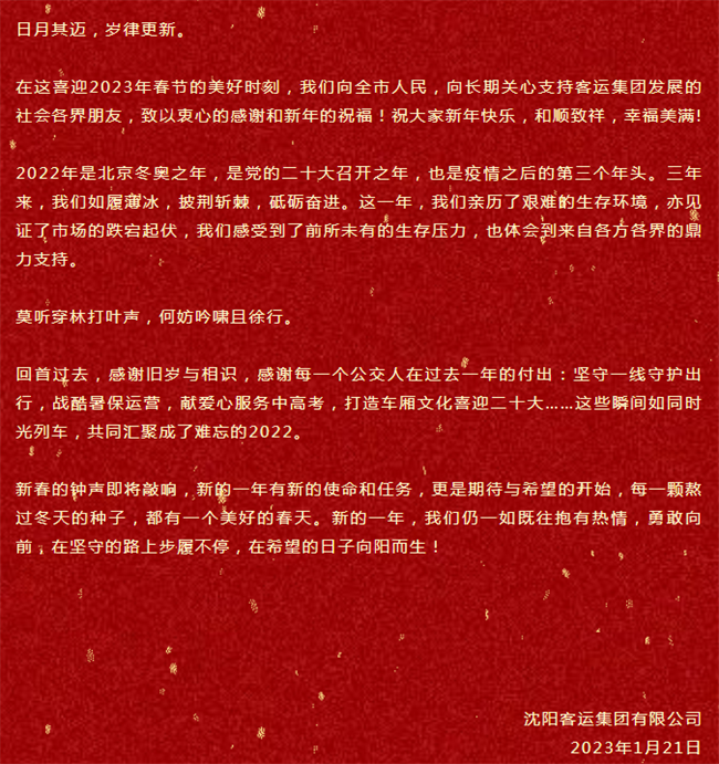 沈陽客運(yùn)集團(tuán)新春賀詞