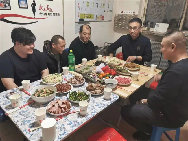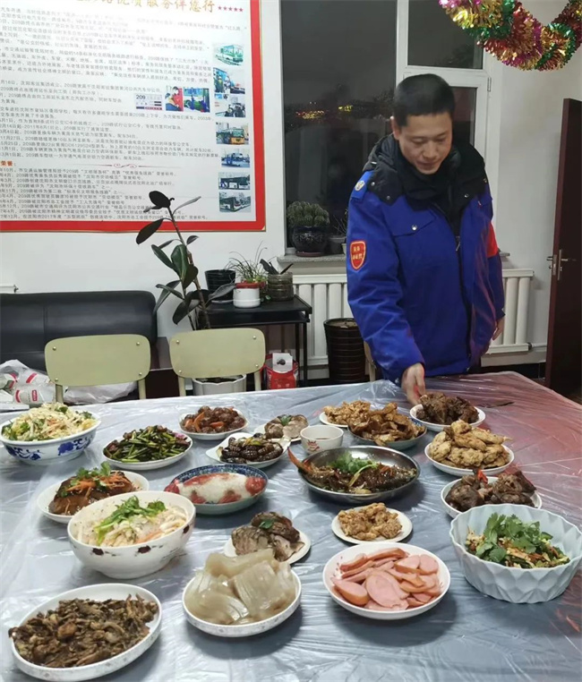 除夕當(dāng)天,車隊(duì)為堅(jiān)守崗位的職工精心準(zhǔn)備了“年夜飯”,大家歡聚一堂,共度新春佳節(jié)。