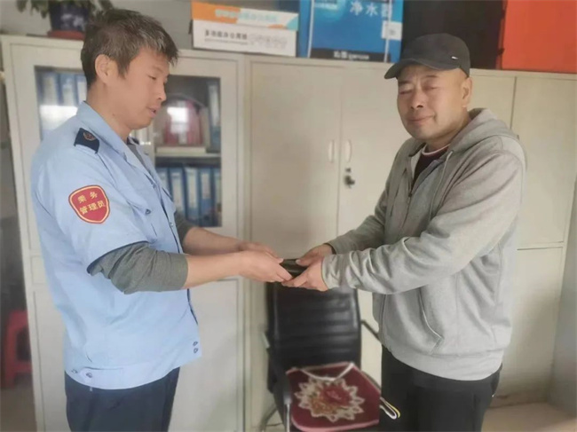 當(dāng)駕駛員翟曉東行駛到橫街車站后,失主楊先生已等候在車站,翟曉東確認(rèn)失主身份后便將手機還給了楊先生。