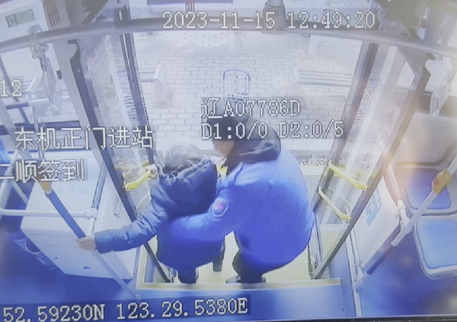 到達(dá)終點站東機(jī)正門,這位老人起身準(zhǔn)備下車,劉仁順主動上前再次抱著老人向車下走去,并將手推車交到老人手中,老人向劉仁順表示了感謝后準(zhǔn)備離開。