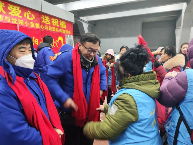 12月22日上午10點,沈陽小藍愛心公益團隊走進211.222路公交車隊開展“迎新年獻愛心送祝福”慰問活動。