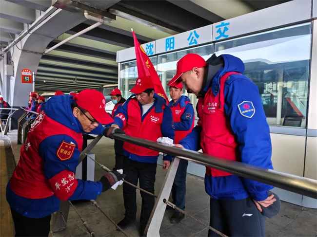 周末氣溫零下十幾度,嚴寒中,志愿者們分工合作,認真清理雜物,細摳衛(wèi)生死角,擦拭候車廊排隊護欄,清除樞紐站內(nèi)的垃圾污物,撿拾道路綠化帶內(nèi)的垃圾,治理亂堆亂放及候車廊亂貼亂畫等行為,充分發(fā)揮了“奉獻、友愛、互助、進步”的志愿服務精神,以實際行動叫響“我是雷鋒”,以清潔環(huán)境迎接八方來沈游客。
