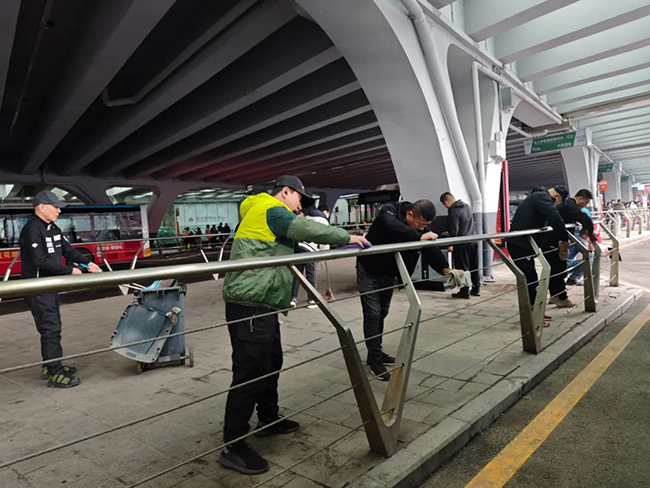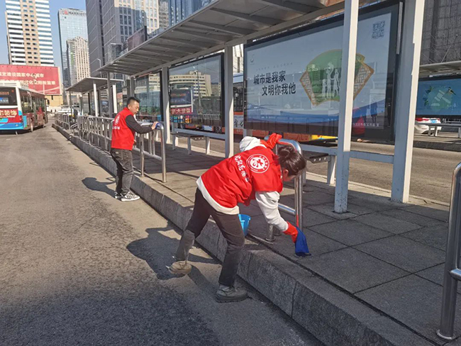 場站公司開展“清潔公交站臺,擦亮文明城市窗口”志愿服務(wù)活動。志愿者們帶著抹布、水桶、掃帚等清潔工具,在北站公交樞紐站對電子站牌、排隊(duì)護(hù)欄、座椅等進(jìn)行清潔整理,改善了乘客的候車環(huán)境。