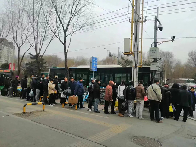 清明前夕,387路客量有所增加,金芳主動(dòng)擔(dān)任起乘務(wù)員的職責(zé),不斷提醒乘客小心慢上,扶好站穩(wěn)。在她耐心的疏導(dǎo)下,乘客們沒有出現(xiàn)浮躁焦慮、一擁而上的混亂場(chǎng)面,而是自覺排起了長(zhǎng)長(zhǎng)的隊(duì)伍,安全有序登上了這趟387路公交車。