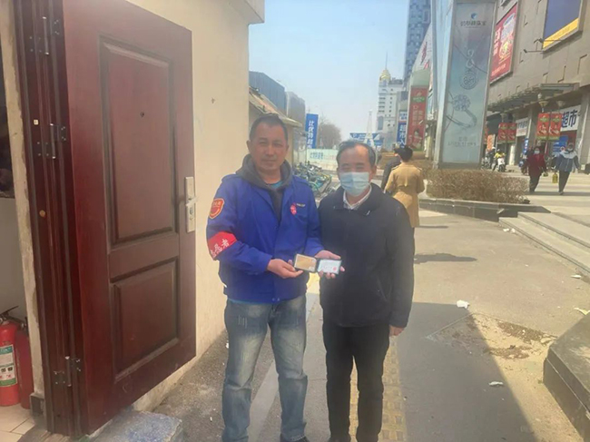 眼看女士越走越遠,馬云鵬連忙將車停穩(wěn),跑下車將手機撿起后大喊:“您手機掉了!”