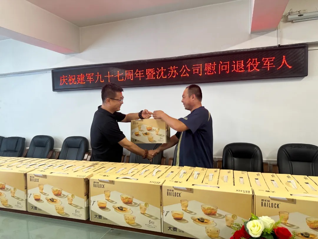 堅守不變初心,續(xù)寫嶄新榮光。在第97個建軍節(jié)來臨之際,為深入學習貫徹黨的二十大精神,厚植愛國主義思想,關(guān)愛退役軍人,增進職工對公司的歸屬感,近日,沈蘇公司舉辦慰問退役軍人活動。