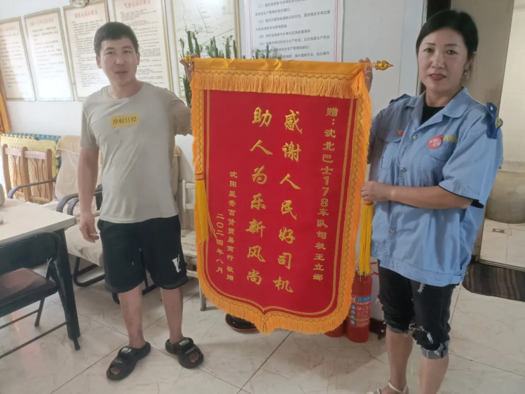 8月20日清晨,178路車隊(duì)來了一位手拿錦旗的先生,他是星秀百貨貿(mào)易商行的送貨司機(jī),他向車隊(duì)激動(dòng)地描述著一件見義勇為的事跡,而事跡的主人公正是178路的女駕駛員王立娜。