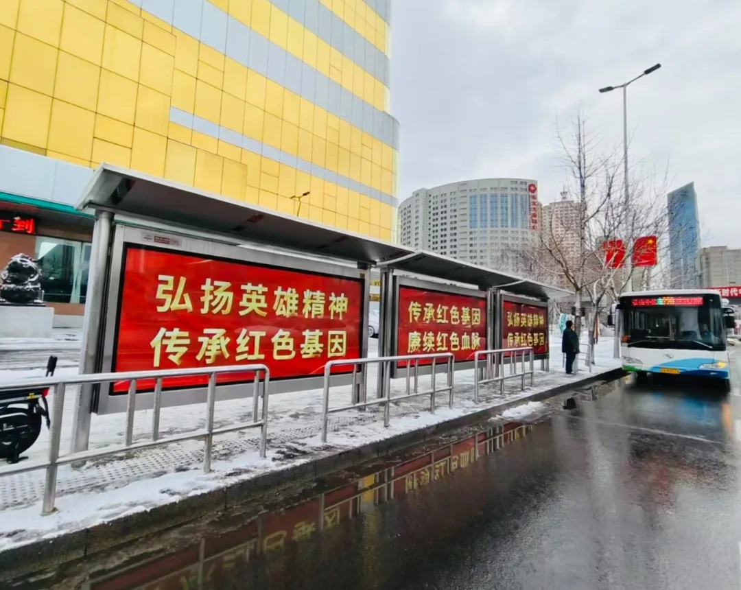 11月26日,雪后的沈陽(yáng)青年大街主色調(diào)變成了紅色——沿線各類戶外電子屏幕、廣告看板、公交車候車亭,都打出了“致敬英雄 銘記英雄 崇尚英雄”“弘揚(yáng)英雄精神 傳承紅色基因”等標(biāo)語(yǔ),迎接志愿軍烈士遺骸歸國(guó)。