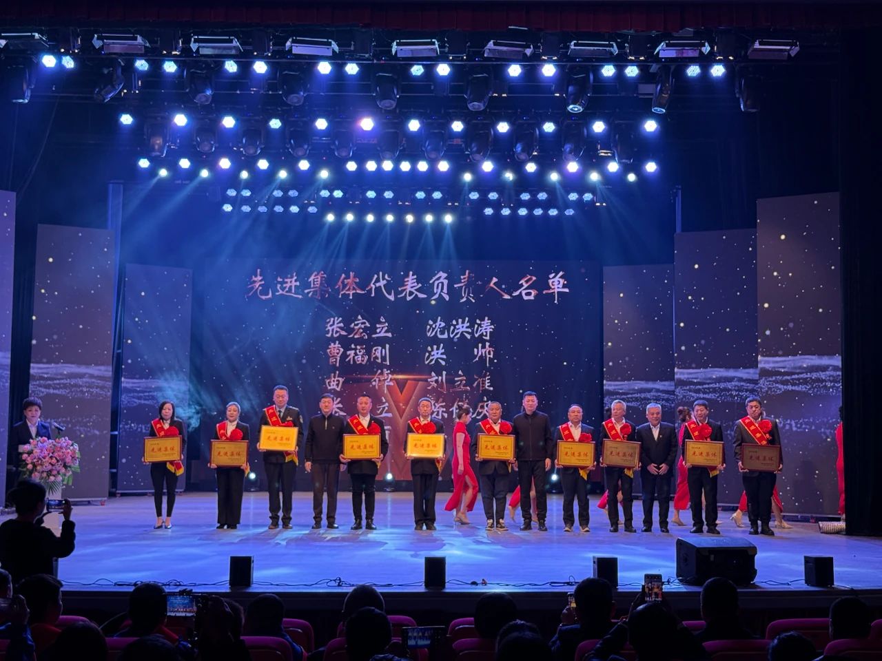 先進(jìn)集體代表負(fù)責(zé)人上臺(tái)領(lǐng)獎(jiǎng)