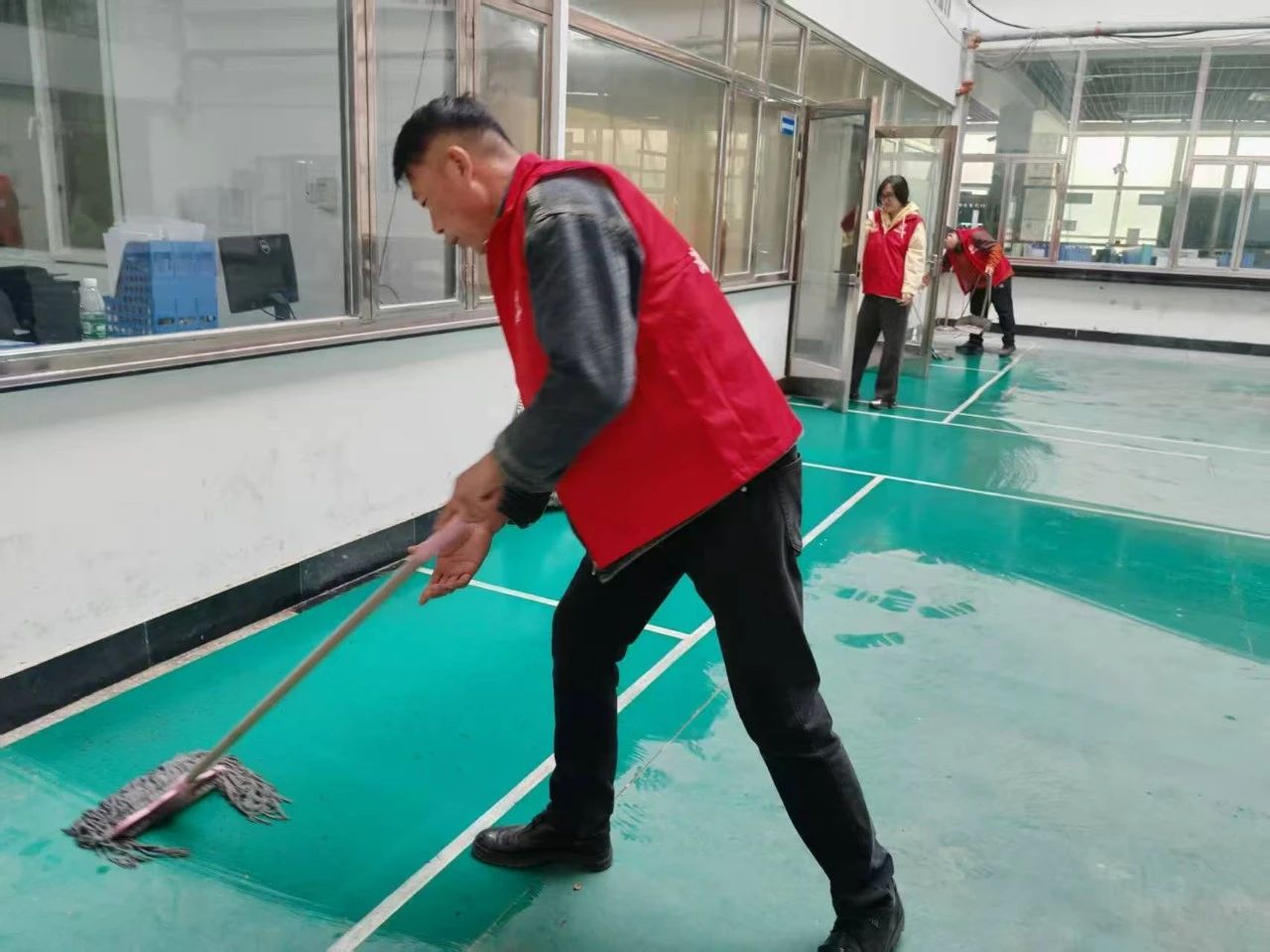 活動(dòng)當(dāng)日,黨員同志們身著紅馬甲,手持掃帚、抹布、拖布等工具,分組對(duì)駕校報(bào)名大廳、理論教室、模擬訓(xùn)練室、候考區(qū)及戶外訓(xùn)練場(chǎng)等區(qū)域展開全方位清潔。