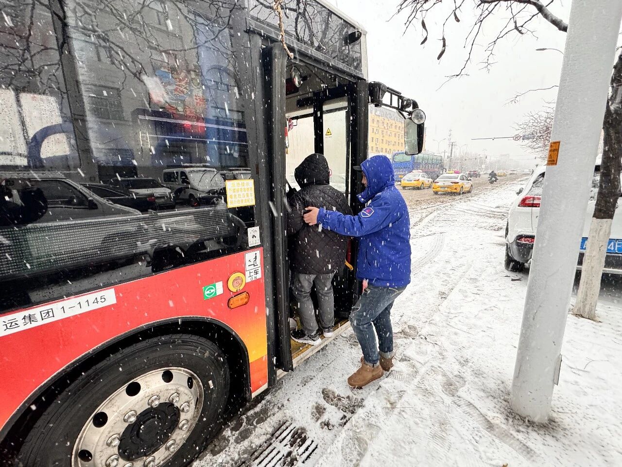 發(fā)車前,各車隊管理人員逐車進行安全叮囑,重點檢查車輛制動、燈光、輪胎、暖風(fēng)等關(guān)鍵部位,確保車況良好、萬無一失。駕駛員在運營過程中嚴格遵守雪天行車規(guī)范,謹慎控制車速,保持安全距離,并貼心提醒乘客扶穩(wěn)坐好,主動減速避讓,禮讓行人,展現(xiàn)出專業(yè)的駕駛素養(yǎng)與暖心的服務(wù)意識。