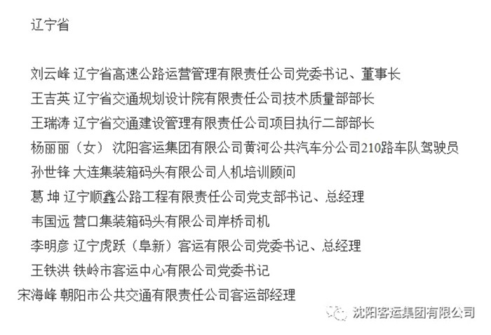 6月12日,遼寧省交通廳舉辦了表彰大會(huì),表彰全國(guó)交通運(yùn)輸系統(tǒng)先進(jìn)集體勞動(dòng)模范和先進(jìn)工作者,集團(tuán)公司210路車隊(duì)駕駛員楊麗麗榮獲“全國(guó)交通運(yùn)輸系統(tǒng)勞動(dòng)模范”稱號(hào),與集團(tuán)公司總經(jīng)理助理王麗一同出席了本次表彰大會(huì)。