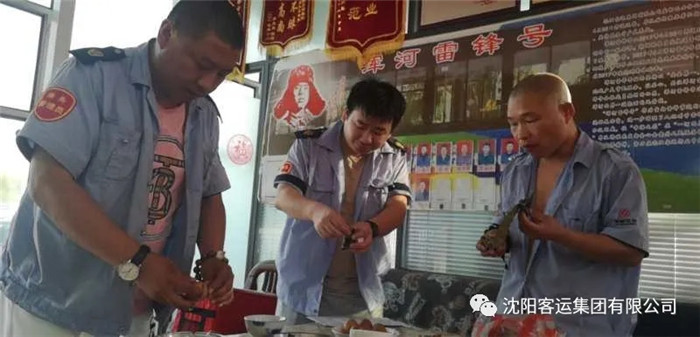端午節(jié),239、252車隊為一線員工準備了粽子、雞蛋、水果等食品,駕駛員們吃粽子頂雞蛋,享受著節(jié)日的快樂。