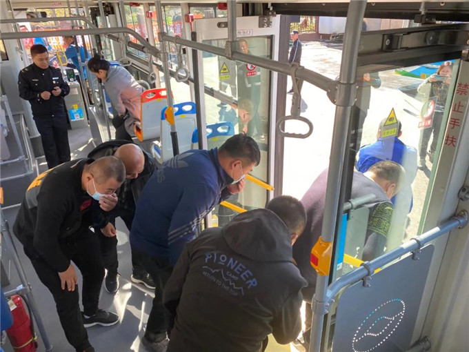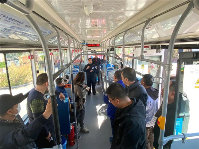 消防安全演練中,李教官在公交車(chē)上講解安全錘的正確使用方法,并模擬公交車(chē)失火后的逃生方法及注意事項(xiàng),迅速、有序、規(guī)范地從公交車(chē)出口疏散。隨后,李教官詳細(xì)介紹滅火器的正確使用方法及滅火時(shí)的注意事項(xiàng),現(xiàn)場(chǎng)指導(dǎo)職工進(jìn)行滅火演練。