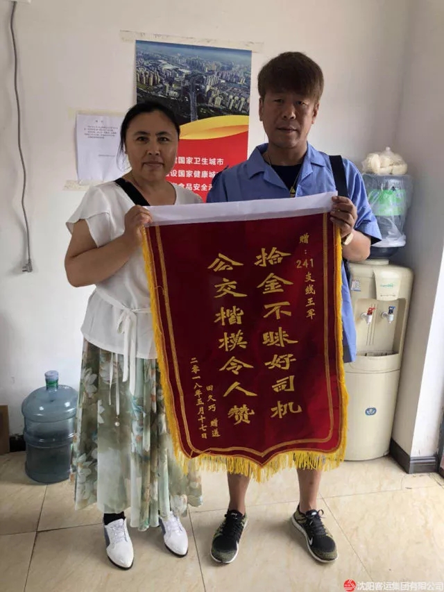 6月20日上午,乘客田久巧女士將一面錦旗送到康利公司241支線車隊,當(dāng)面感謝好心駕駛員王軍。