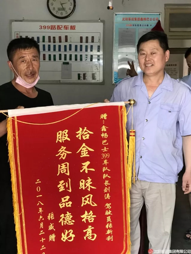 原來乘客張先生乘坐399路公交車趕往沈陽站時,在車內(nèi)睡著了,不慎將錢包掉在了車廂的座椅縫隙中,在下車時候并未察覺,到了車站才發(fā)現(xiàn)錢包丟失。張先生說道:“幸虧第一時間車隊聯(lián)系到了他,不然損失了錢財不說,證件的補(bǔ)辦也是十分麻煩的?!钡诙欤丝蛷埾壬氐厮蛠砹艘幻驽\旗,張先生對駕駛員張新利的感激之情溢于言表。