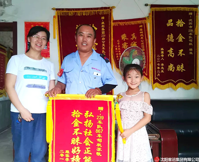 8月23日上午,乘客李女士帶著女兒將一面錦旗送到康利公司239車隊,并要當(dāng)面感謝好心駕駛員蘇凱。