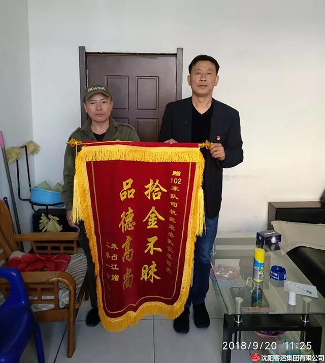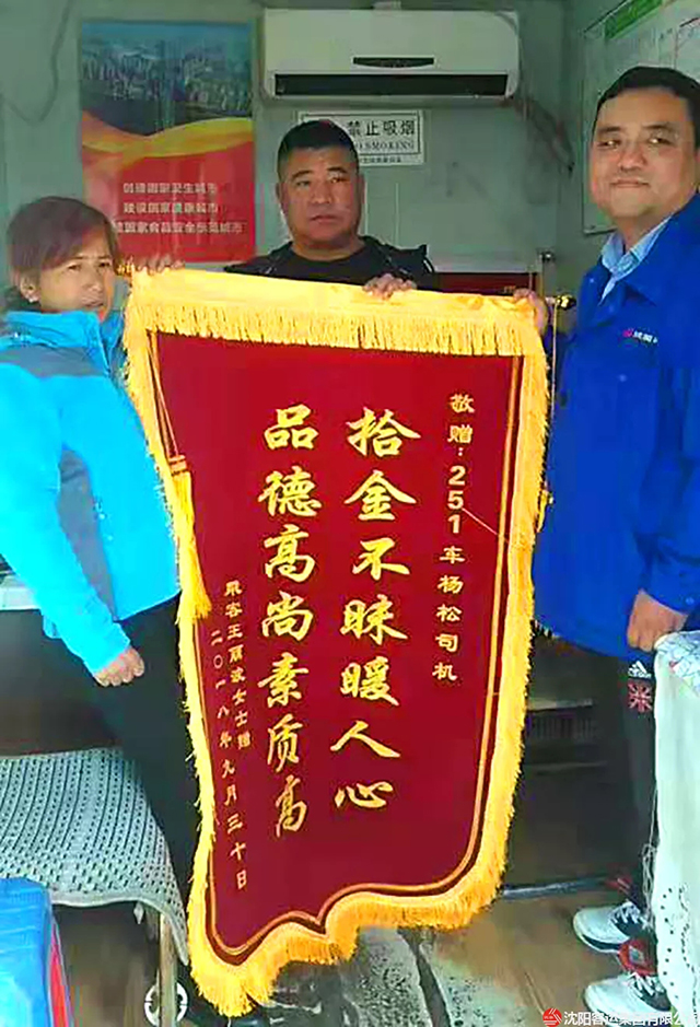 9月29日,康利公司251車隊(duì)973車駕駛員楊松上午10點(diǎn)左右,從龍之夢方向開往站西廣場到終點(diǎn)時拾到了一個背包,他馬上交給了車隊(duì),在查找包內(nèi)證件時發(fā)現(xiàn)有一萬元現(xiàn)金。經(jīng)過多方聯(lián)系終于找到了失主。次日,為了表達(dá)自己的感激之情,失主王女士送來了錦旗。
